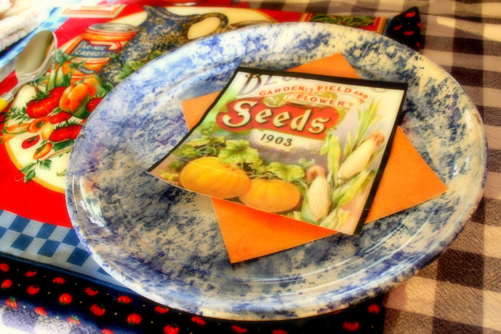 Pinterest is a great source for Vintage seed packet labels. These were printed off and then placed on a solid paper as place cards.